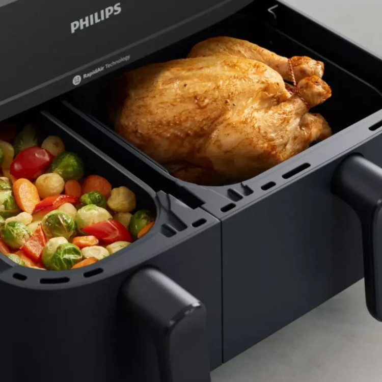 از آنجایی که این سرخ کن دارای دو محفظه پخت بوده می توان درون هر محفظه مواد غذایی یکسان یا متفاوت را قرار داده و آماده کرد. زمان های پخت را به طور خودکار در 2 کشو همگام سازی کنید تا هر دو غذای شما با هم آماده سرو شوند. سیستم خاموش شدن خودکار موجب شده تا بعد از پخت غذا، دستگاه خاموش گردد و احتمال سوختن به شدت کاهش یابد.
