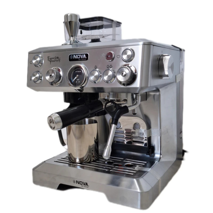 اسپرسوساز نیمه صنعتی نوا مدل 165 یکی از جدیدترین و پر طرفدار ترین محصولات شرکت نوا است. این محصول ویژگیهای ظاهری و عملکردی زیادی دارد که موجب شده است این محصول جزء قدرتمندترین اسپرسوسازها به شمار رود. از جمله قابلیتها و امکانات این محصول میتوان به مجهز بودن به آسیاب سرخود، پرتافیلتر صنعتی، گنجایش زیاد مخزن آب، نازل بخار و نازل آبجوش اشاره کرد. این دستگاه با توان مصرفی 2500 واتی خود میتواند در اسرع وقت نوشیدنی مورد علاقه شما را با بالاترین کیفیت آماده کند. این غول برند نوا دارای قابلیتهای دیگری مثل سیستم قطع کن خودکار، سیستم خنکسازی اتوماتیک، سیستم برنامه ریزی و قابلیتهای متنوع دیگری است که ارزش خرید این محصول را به شدت بالا میبرد. از ویژگی های این دستگاه میشه به : کیفیت ساخت بالا,قطع کن خودکار,آسیاب قابل تنظیم ,عصاره گیری چند حالته,سیستم خنک کننده خودکار ,گیج فشار ,قابلیت تنظیم زمان عصاره گیری اشاره کرد.از قابلیتهای منحصر به فرد این مدل، امکان تهیه قهوه اسپرسو و آمریکانو و لانگو و قهوه سرد به صورت اتوماتیک می باشد.