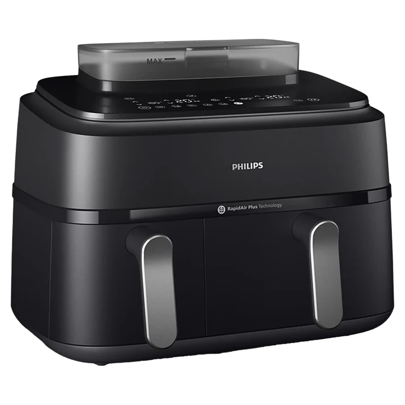فناوری RapidAir Plus و Air Steam برای پخت بهتر / قابلیت پخت دوکاره: بخارپز و سرخکن / قابلیت تنظیک تایمر تا ۶۰ دقیقه / ۱۲ برنامه پیشفرض برای پخت متنوع / دارای دو سبد جداگانه برای پخت غذاهای مختلف / یکی از سبدها مجهز به قابلیت بخارپز